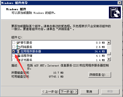 3、在組件向?qū)е姓业健緫?yīng)用程序服務(wù)器】雙擊打開(kāi),勾選【Internet信息服務(wù)(IIS)】和【應(yīng)用程序服務(wù)器控制臺(tái)】,勾選后先不要那么快點(diǎn)確定