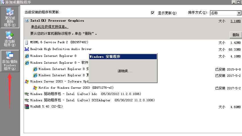 2、雙擊【添加或刪除程序】,單擊【添加/刪除Windows組件】,稍等會(huì)兒就能看到組件向?qū)?/p>