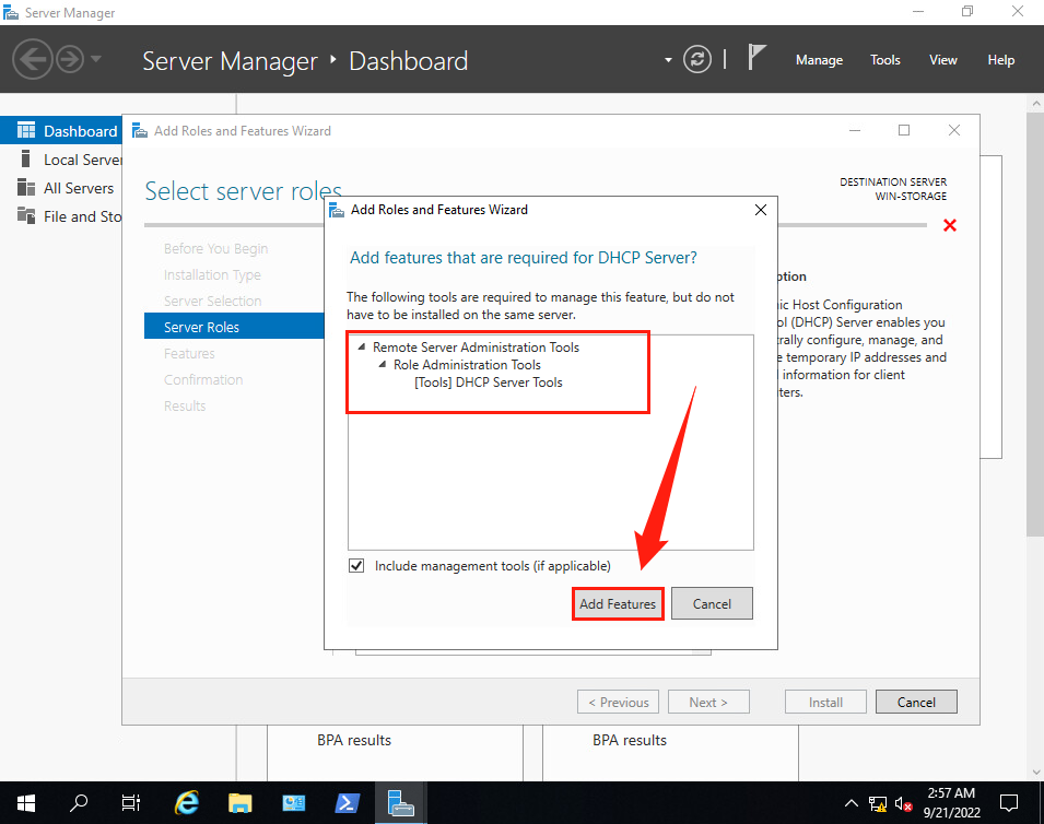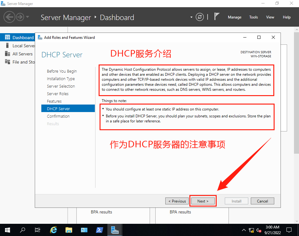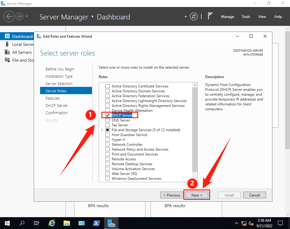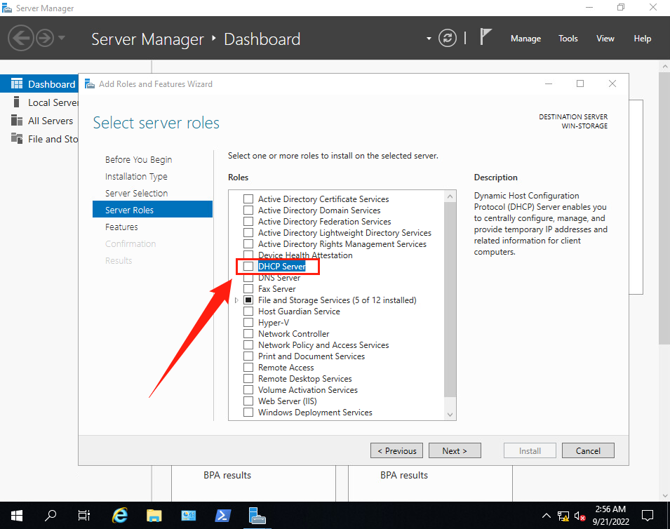 (7)返回【Select server roles】界面, 確保勾選了【DHCP Server】。