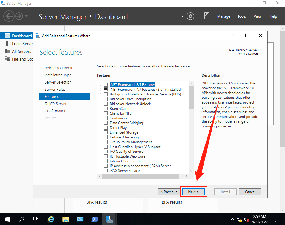 (8)進入【Select features】界面, 不需要再添加額外的功能, 因此不做修改 ,保持默認即可。