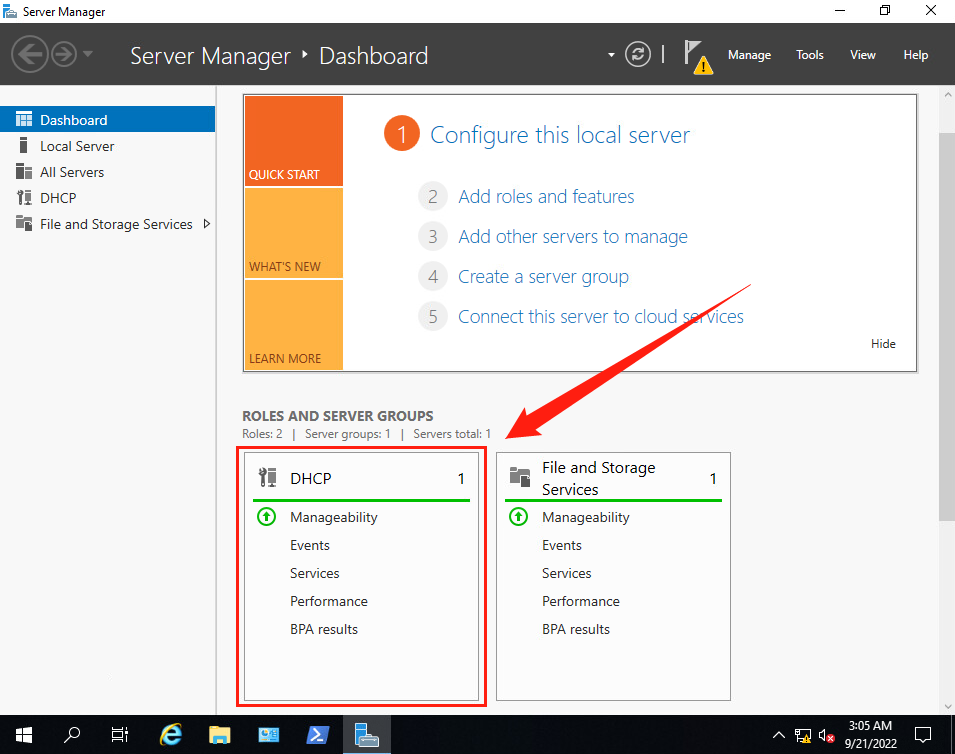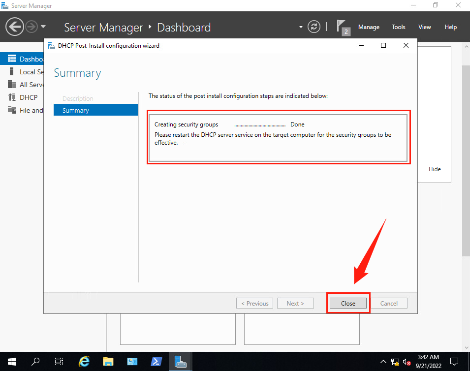 (12)返回【Server Manager·Dashboard】界面,可以看到DHCP服務已經成功安裝。
