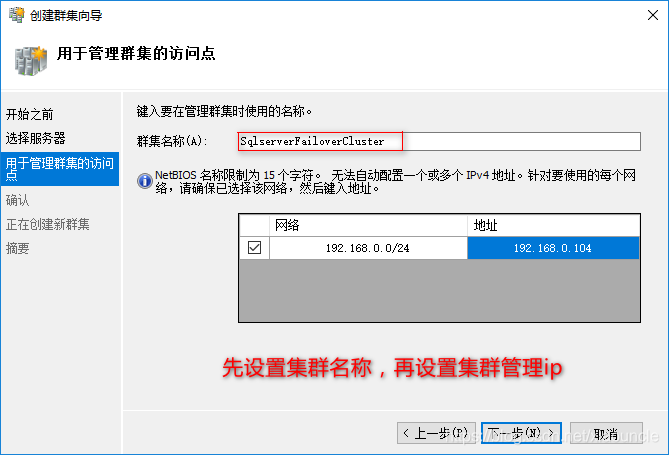 3、設(shè)置集群名稱(chēng)、管理IP并確認(rèn)(管理IP是能連通的閑置IP,不是服務(wù)器)