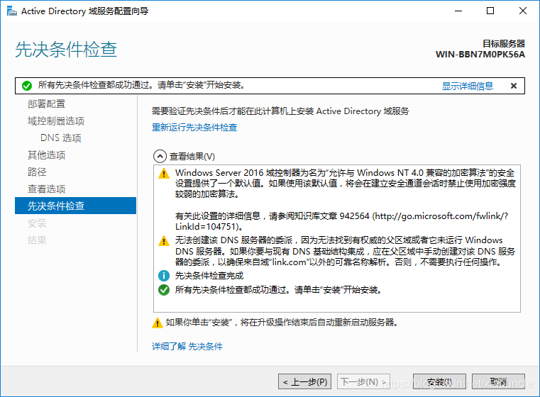 2、安裝域控(安裝AD域服務的同時,操作系統會同時安裝好DNS服務器)