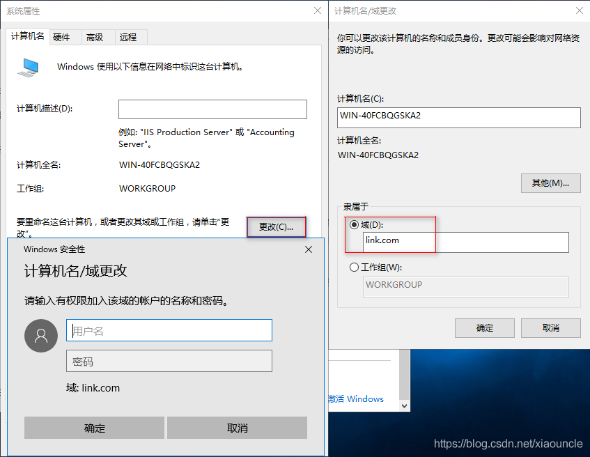 3、 把本機添加到域控中,并在重啟后用本地管理員賬戶登錄進行確認