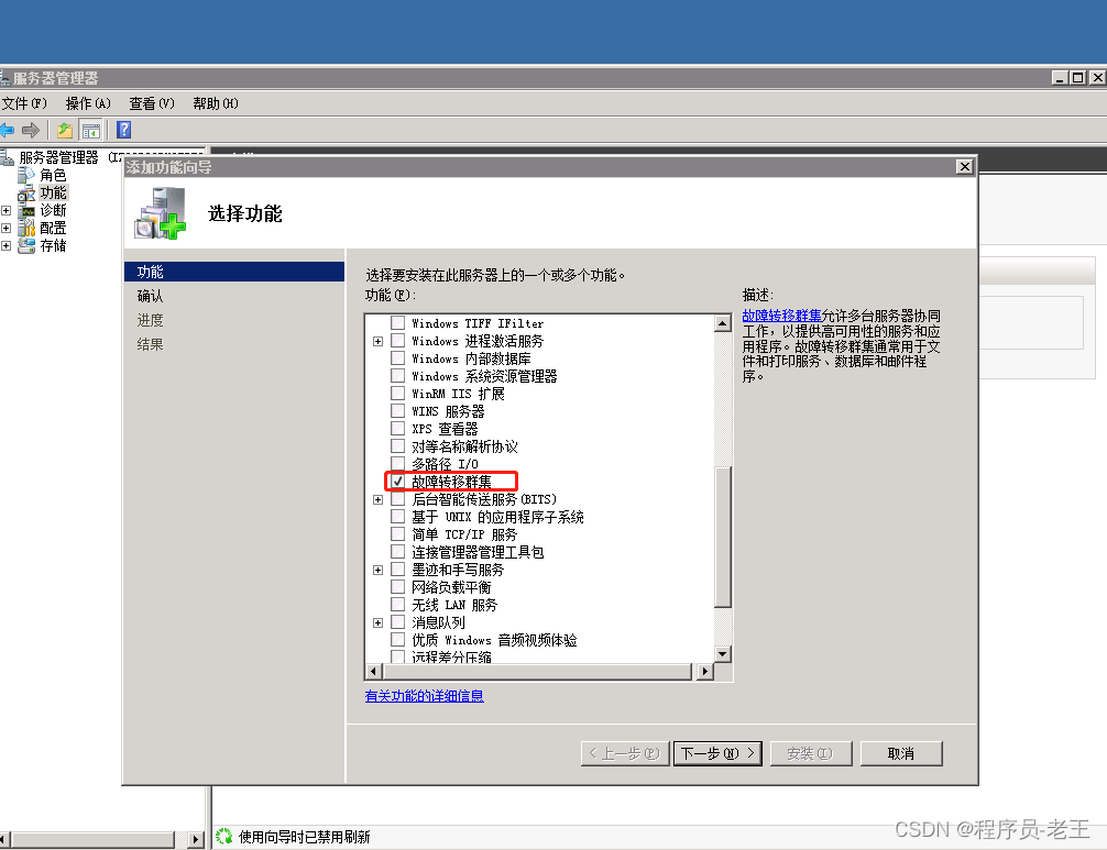 域控和各節點安裝故障轉移群集
