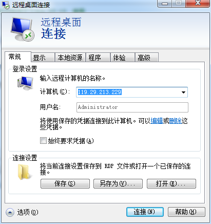 點(diǎn)擊“選項(xiàng)”按鈕,打開遠(yuǎn)程連接選項(xiàng)卡