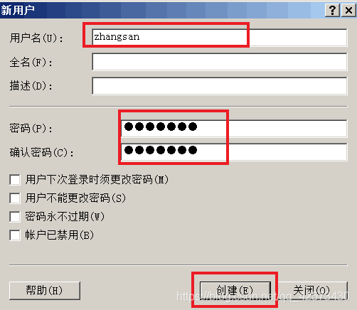 6.添加FTP用戶,打開服務器管理器,右擊用戶選擇新用戶zhangsan