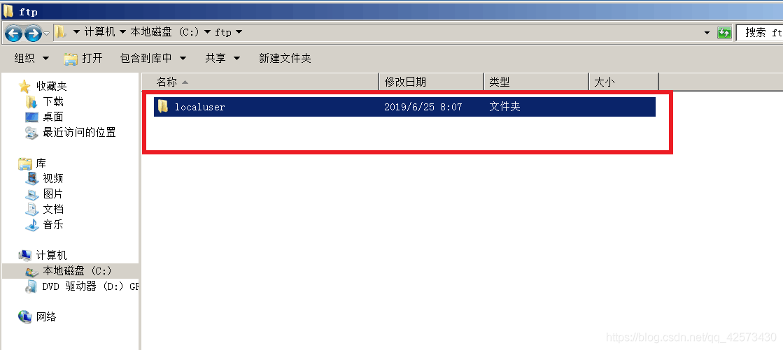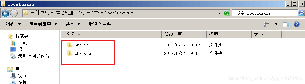 7.在C盤下FTP文件夾下新建文件夾localuser,localuser下新建文件夾zhangsan和文件夾public
