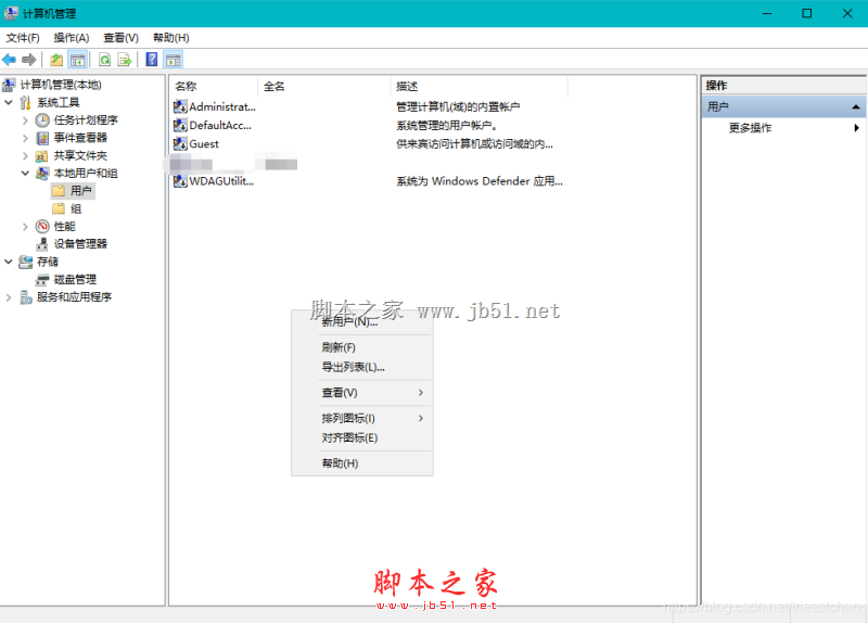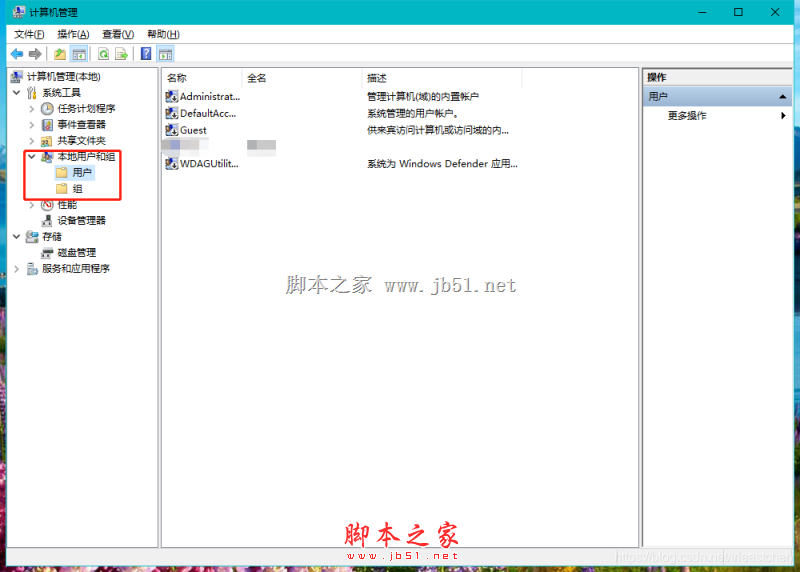 1)打開計算機管理,Win10和Server打開方式不同,自行百度,在左側(cè)找到用戶,單擊。如果打開計算機管理沒有該選項說明操作系統(tǒng)為家庭版或者其他不支持的版本,需要更換操作系統(tǒng)。