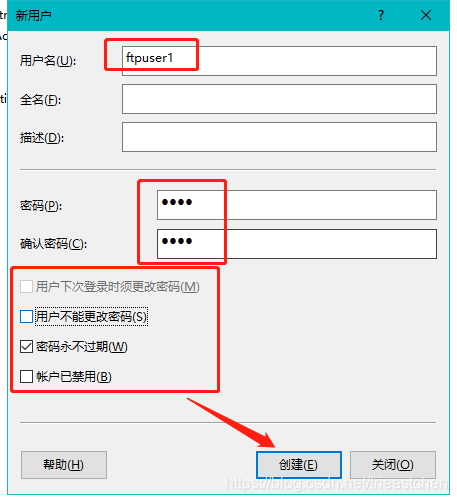3)輸入用戶名密碼,勾選密碼永不過期;
