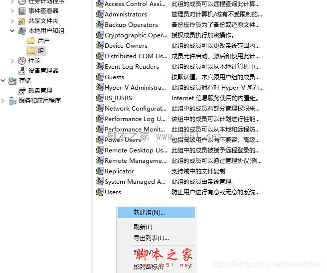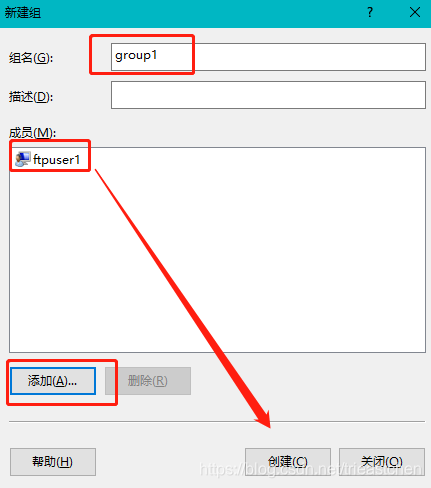 4)創(chuàng)建完所有需要的用戶后,單擊關閉,在左側(cè)單擊組,根據(jù)需要新建用戶組,添加剛剛新建的用戶;