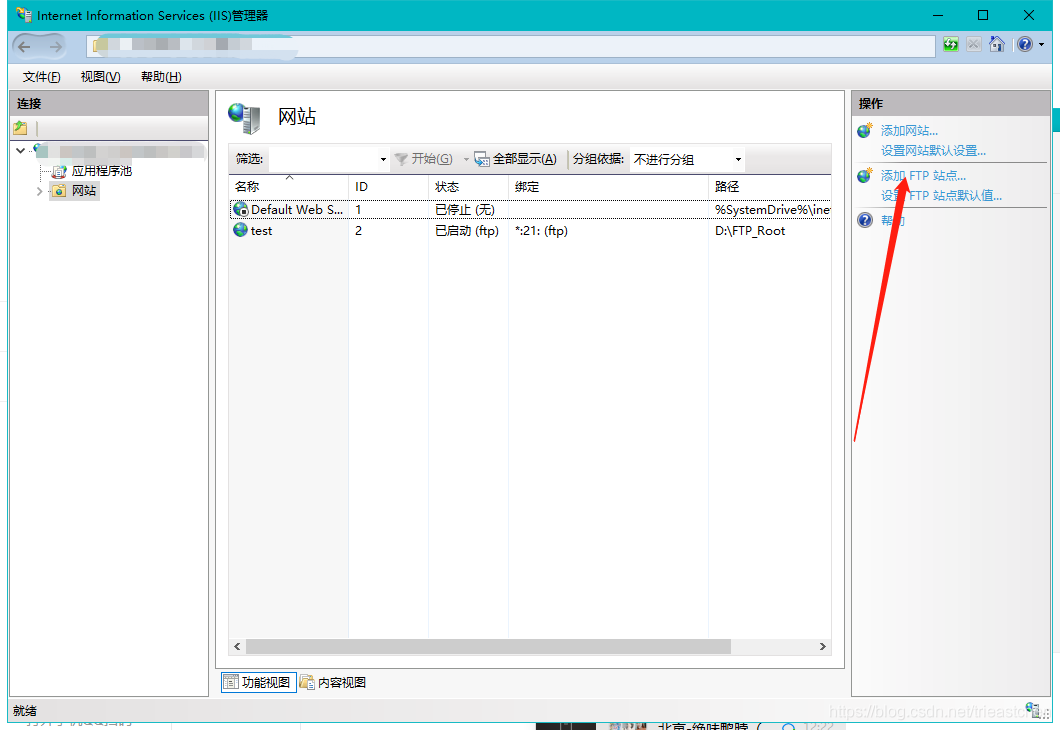 1)雙擊新建的FTP站點,打開管理界面