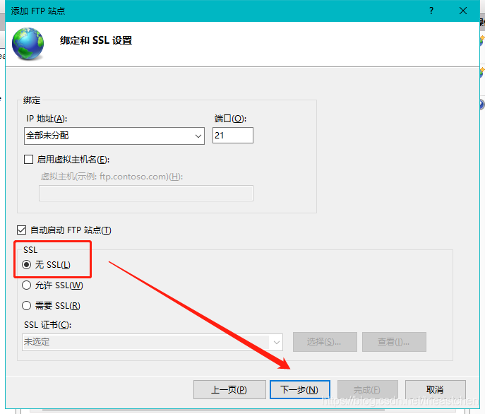 3)如果不需要配置SSL,如下圖選擇,單擊下一步