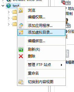 5)添加虛擬共享目錄,在FTP站點上右鍵,選擇“添加虛擬目錄”,