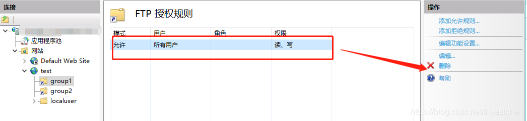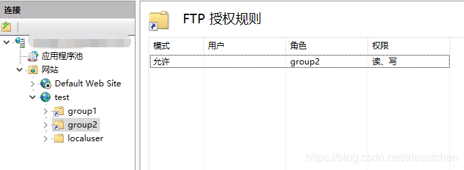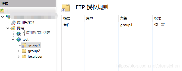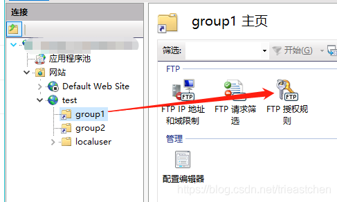 雙擊group1文件夾,然后雙擊右側(cè)“FTP授權(quán)規(guī)則”,