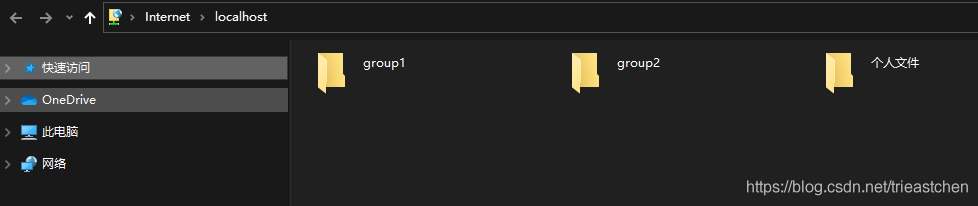 即可打開FTP文件夾,個人文件夾中具備完全權(quán)限,group1中可以上傳文件、刪除自己上傳的文件、查看他人上傳的文件,但是無法刪除他人上傳的文件。
