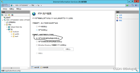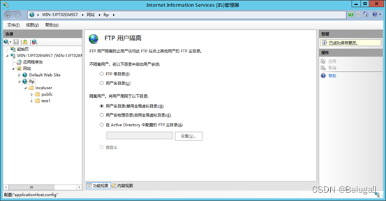 到此這篇關于Windows server 2012 iis搭建用戶隔離FTP站點的圖文方法的文章就介紹到這了,更多相關iis用戶隔離FTP內容請搜索以前的文章或繼續瀏覽下面的相關文章希望大家以后多多支持!