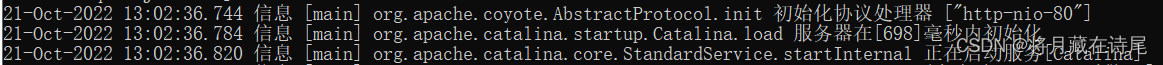 21-Oct-2022 13:41:57.148 嚴重 [main] org.apache.catalina.util.LifecycleBase.handleSubClassException 初始化組件[Connector[HTTP/1.1-8080]]失敗。org.apache.catalina.LifecycleException: 協議處理程序初始化失敗at org.apache.catalina.connector.Connector.initInternal(Connector.java:1055)at org.apache.catalina.util.LifecycleBase.init(LifecycleBase.java:136)at org.apache.catalina.core.StandardService.initInternal(StandardService.java:556)at org.apache.catalina.util.LifecycleBase.init(LifecycleBase.java:136)at org.apache.catalina.core.StandardServer.initInternal(StandardServer.java:1045)at org.apache.catalina.util.LifecycleBase.init(LifecycleBase.java:136)at org.apache.catalina.startup.Catalina.load(Catalina.java:747)at org.apache.catalina.startup.Catalina.load(Catalina.java:769)at sun.reflect.NativeMethodAccessorImpl.invoke0(Native Method)at sun.reflect.NativeMethodAccessorImpl.invoke(NativeMethodAccessorImpl.java:62)at sun.reflect.DelegatingMethodAccessorImpl.invoke(DelegatingMethodAccessorImpl.java:43)at java.lang.reflect.Method.invoke(Method.java:498)at org.apache.catalina.startup.Bootstrap.load(Bootstrap.java:305)at org.apache.catalina.startup.Bootstrap.main(Bootstrap.java:475)Caused by: java.net.BindException: Address already in use: bindat sun.nio.ch.Net.bind0(Native Method)at sun.nio.ch.Net.bind(Net.java:433)at sun.nio.ch.Net.bind(Net.java:425)at sun.nio.ch.ServerSocketChannelImpl.bind(ServerSocketChannelImpl.java:223)at org.apache.tomcat.util.net.NioEndpoint.initServerSocket(NioEndpoint.java:246)at org.apache.tomcat.util.net.NioEndpoint.bind(NioEndpoint.java:201)at org.apache.tomcat.util.net.AbstractEndpoint.bindWithCleanup(AbstractEndpoint.java:1192)at org.apache.tomcat.util.net.AbstractEndpoint.init(AbstractEndpoint.java:1205)at org.apache.coyote.AbstractProtocol.init(AbstractProtocol.java:583)at org.apache.coyote.http11.AbstractHttp11Protocol.init(AbstractHttp11Protocol.java:79)at org.apache.catalina.connector.Connector.initInternal(Connector.java:1052)... 13 more