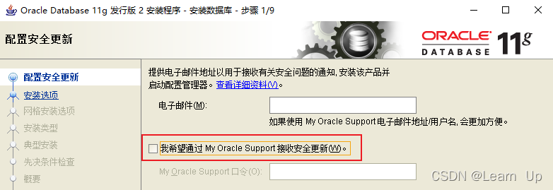 3、安裝程序會(huì)檢查系統(tǒng)環(huán)境時(shí)候滿足oracle 11g的安裝條件,如果滿足會(huì)彈出如下界面,勾選掉紅色框位置的選項(xiàng)。然后點(diǎn)擊下一步。