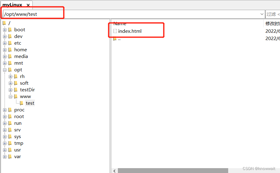 將index.html上傳至linux /opt/www/test