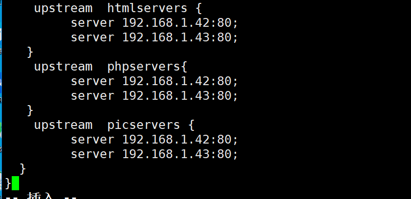 upstream htmlservers { server 192.168.1.42:80; server 192.168.1.43:80; } upstream phpservers{ server 192.168.1.42:80; server 192.168.1.43:80; } upstream picservers { server 192.168.1.42:80; server 192.168.1.43:80; }配置文件是否有錯誤
