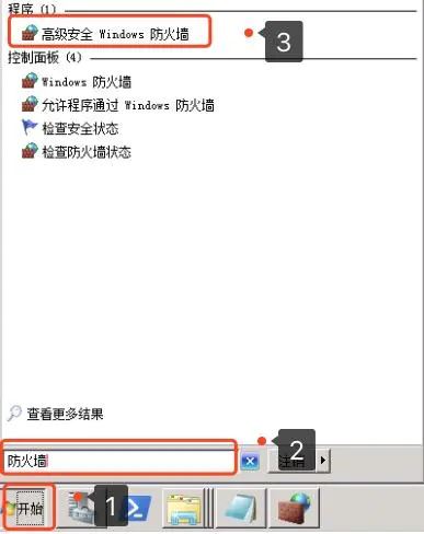啟動(dòng)這個(gè) Windows 高級安全防火墻的最簡單最快速的方法是,在開始菜單的搜索框中鍵入‘防火墻’。