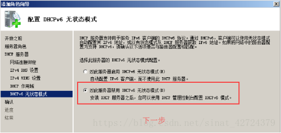12. DHCPv6無狀態(tài)模式,選擇禁用模式;在Windows Server 2008中默認(rèn)增加了對下一代IP地址規(guī)范IPv6的支持,不過就目前的網(wǎng)絡(luò)現(xiàn)狀來說很少用到IPv6,因此可以選擇對此服務(wù)器禁用DHCPv6無狀態(tài)模式。