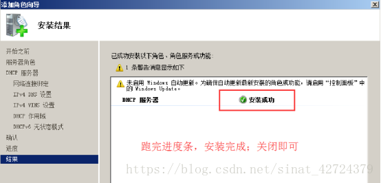 13. 在“確認(rèn)”界面,確認(rèn)后點(diǎn)擊安裝,開始自動(dòng)安裝。進(jìn)度條完成,DHCP也安裝完成。
