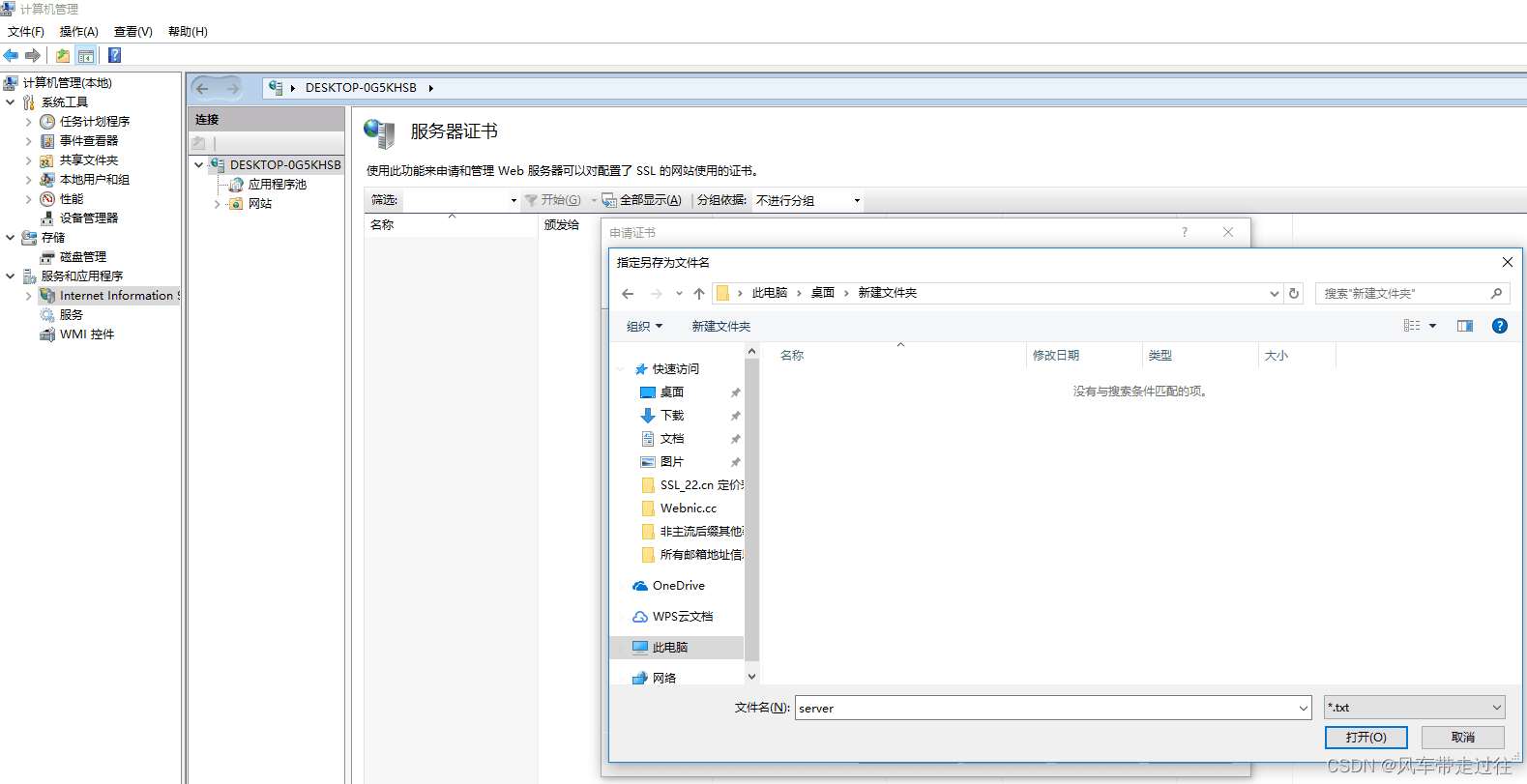 命名一個名稱server.txt的文件,導出CSR文件,該CSR文件將用于權威頒發機構證書申請。