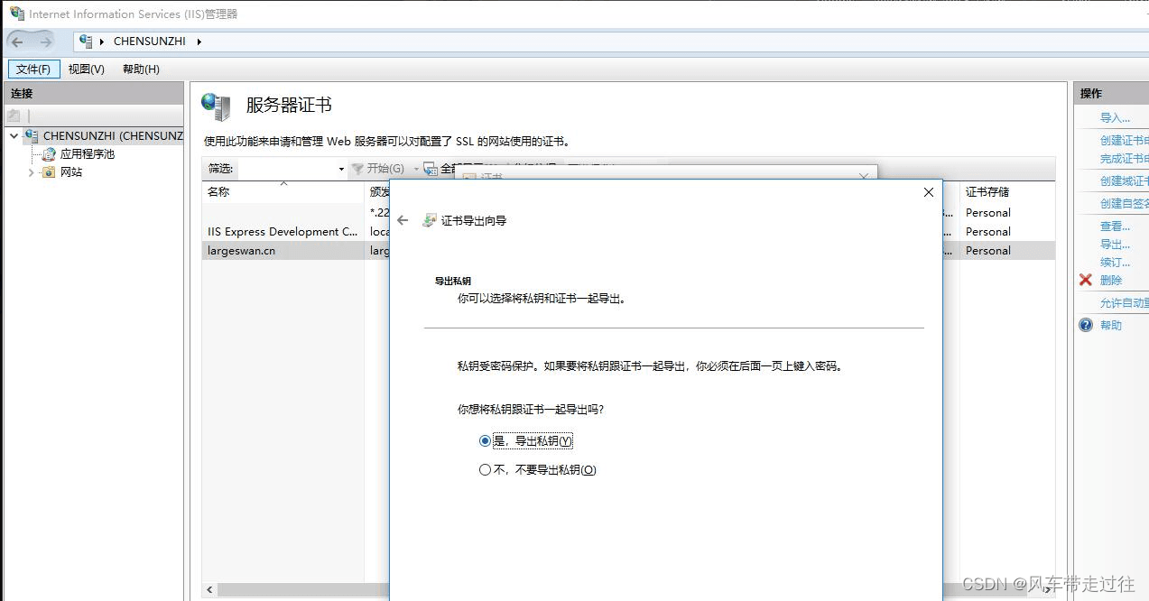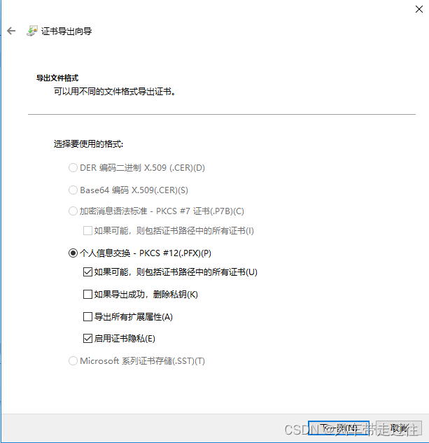 選擇“是,導出私鑰”即導出帶私鑰的pfx 文件;