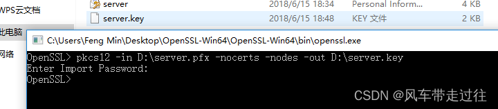 用openssl 工具 從pfx中提取key,輸入以下命令,如下圖所示: