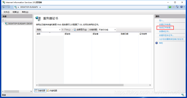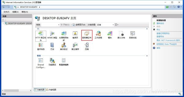 1)打開IIS(Internet Information Services)管理器選擇需要制作證書的服務器,選擇服務器證書選項,進入服務器證書界面