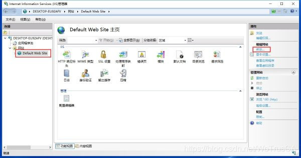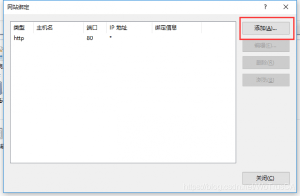選擇你的服務器-網站-要綁定證書的web網站,點擊右邊“綁定”進入綁定界面。