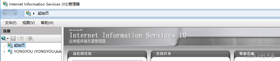 成功安裝“Web服務器(IIS)”角色后,在服務器管理器左側會多出一欄“IIS”,或者也可以Win+R執行inetmgr快速調出IIS管理器