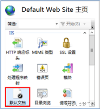 默認文檔指的是當客戶機訪問此網站目錄時,IIS提供給瀏覽器的第一個文檔。大多數網站將 index.html 作為默認文檔(俗稱首頁)。在Default Web Site主頁中,雙擊“默認文檔“