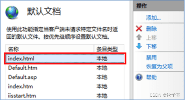即訪問此網站目錄時,IIS提供給瀏覽器的第一個文檔大多數網站將index.html作為首頁