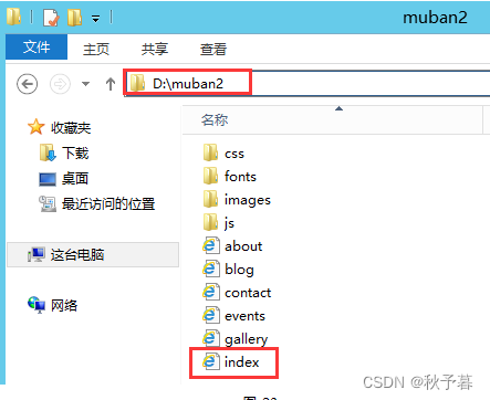 將事先做好的網頁文件存到服務器, D:\muban2\index.html