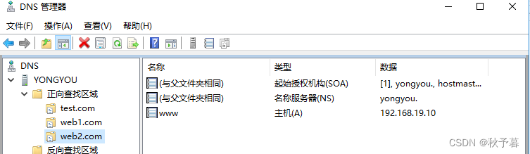 在DNS服務器上注冊兩個域名,都指向IIS服務器的地址www.web1.com的IP地址 192.168.10.80www.web2.com的IP地址 192.168.10.80