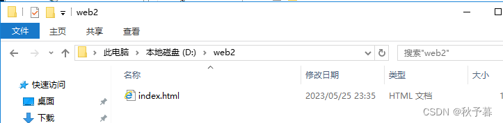 2)D盤web2目中添加網頁文件,網頁內容“web2”,文件名為index.html
