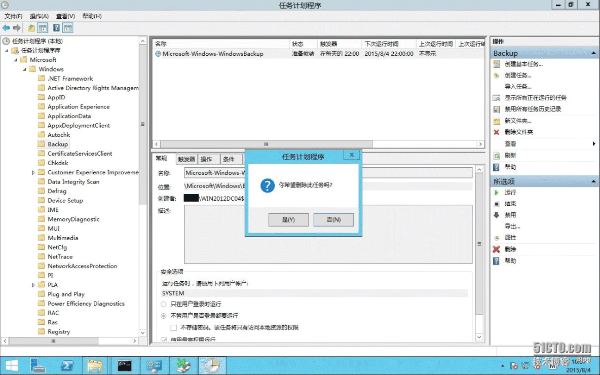 9、如果我們要創建多個備份計劃,所以在任務計劃中導出任務,再刪除它,然后在server backup繼續運行備份向導就可以添加周備份、月備份等,此步驟是完成多個備份計劃的關鍵!