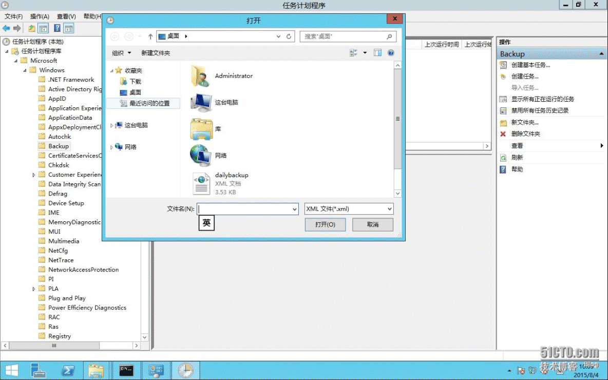 11、打開任務計劃,導入剛才導出的任務。(我這里是dailybacup,weekbackup)