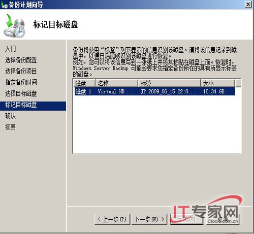 依據(jù)向?qū)нM(jìn)入“標(biāo)記目標(biāo)磁盤”界面,所選的磁盤都會列出來。另外還有不同的標(biāo)簽顯示磁盤的類型、服務(wù)器的名稱和當(dāng)前的日期與可用空間的大小。如果希望從這些磁盤上的備份中恢復(fù),那么就需要通過這些信息選擇磁盤。因此,筆者建議一定要將這些信息記錄下來,對于外部磁盤,我們可將包含這些信息的標(biāo)簽直接貼到硬盤上。在“確認(rèn)”界面中,在復(fù)查信息無誤后,單擊“完成”就會執(zhí)行目標(biāo)磁盤的格式化。(圖6)