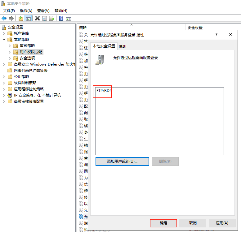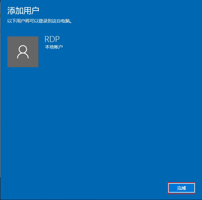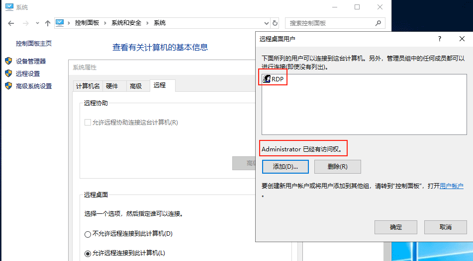 現在只有RDP用戶具有遠程桌面登錄的權限。