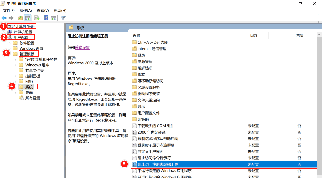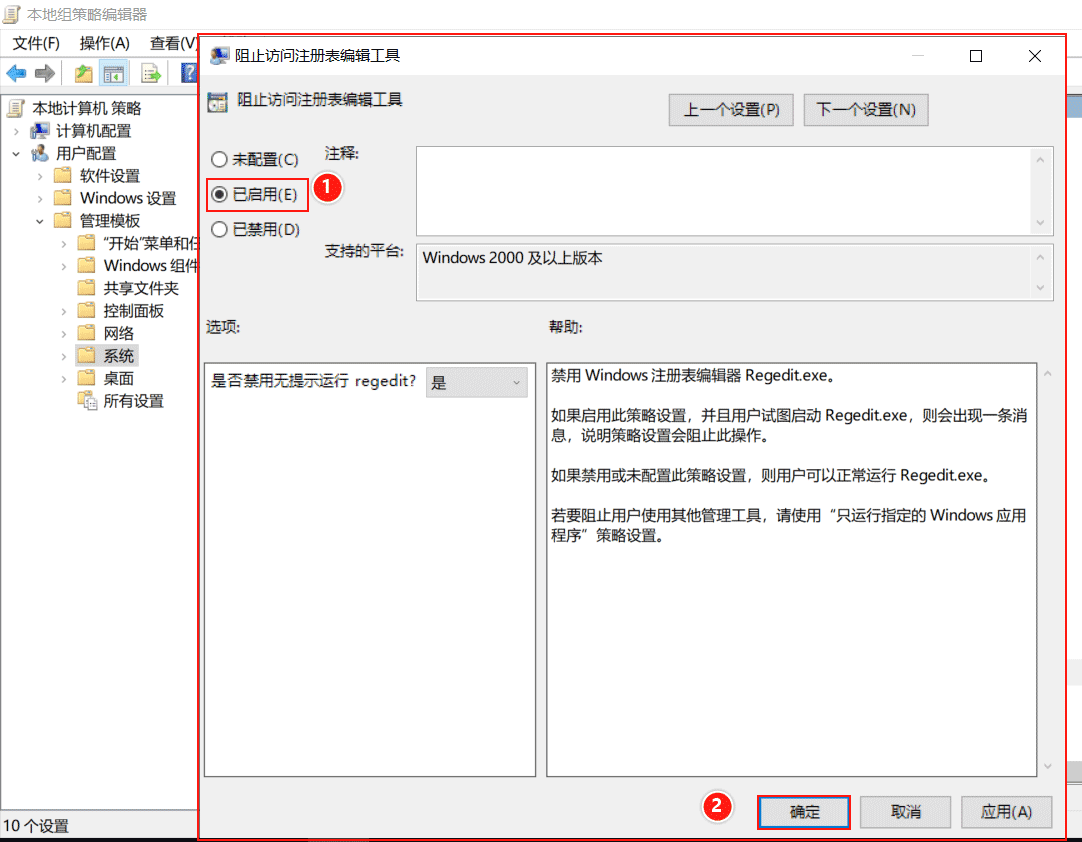 (1)禁止本機(jī)用戶(hù)編輯注冊(cè)表注冊(cè)表編輯器是編輯Windows系統(tǒng)注冊(cè)表的工具。