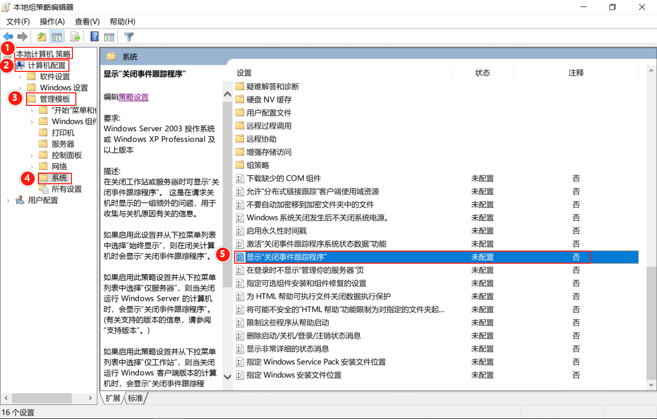 (2)禁用Windows Server 2019服務(wù)器的【關(guān)閉事件追蹤程序】。