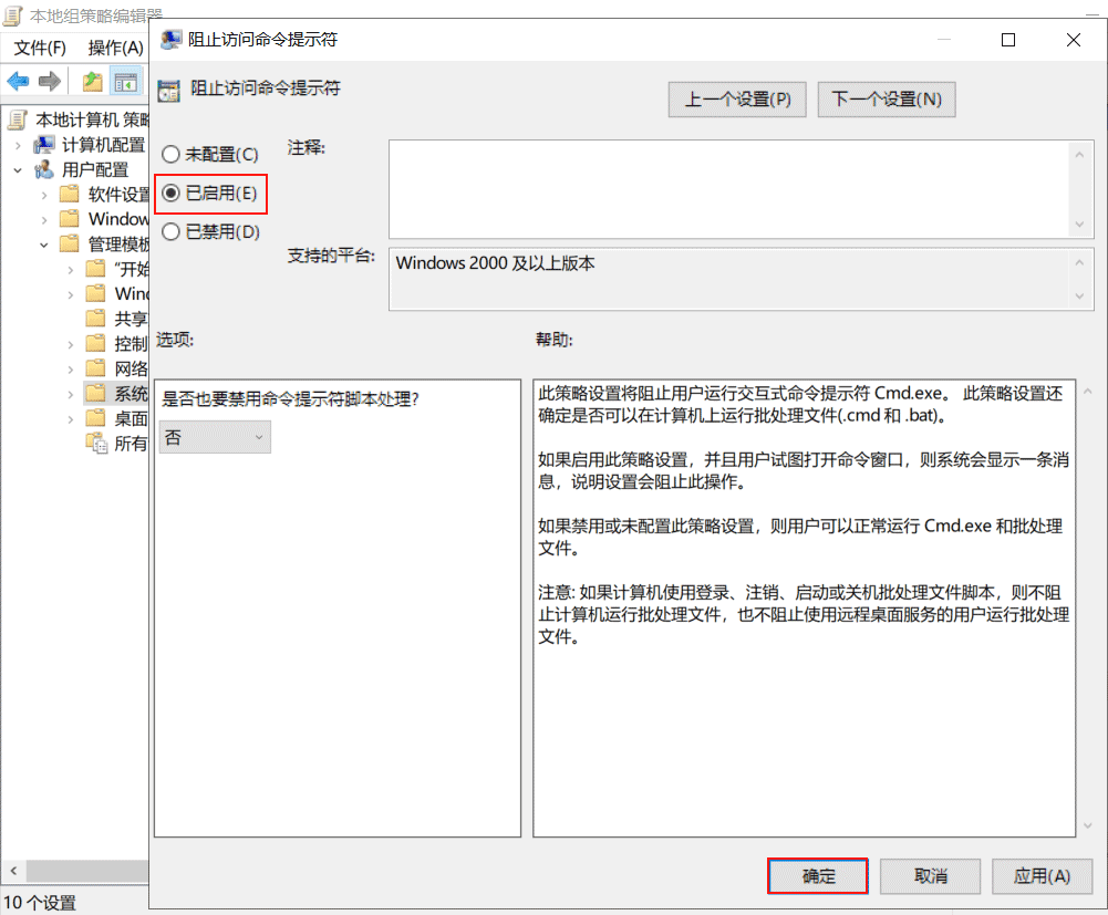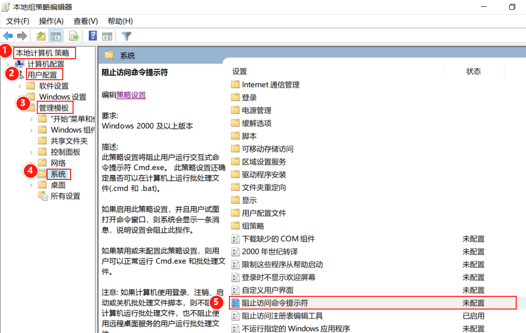(4)禁止本機(jī)用戶(hù)使用命令提示符。