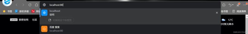 2.在瀏覽器中的地址欄中輸入localhost:80,然后回車,就能跳到nginx.exe對應的網頁頁面了