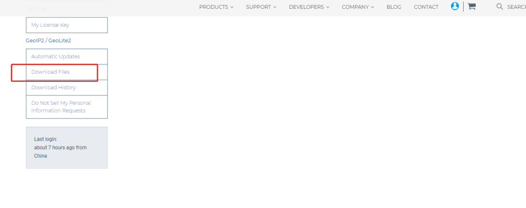 登錄 www.maxmind.com 網址,創建賬戶,下載最新的庫文件。(賬戶創建就不演示了)點擊左側,Download Files: