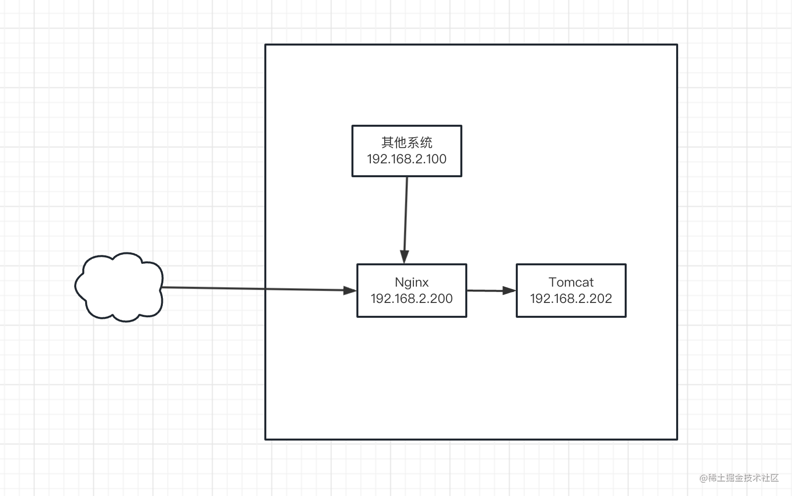 嘗試解決分析單體項(xiàng)目,系統(tǒng)部署架構(gòu)很簡單,抽象一下如下圖所示: