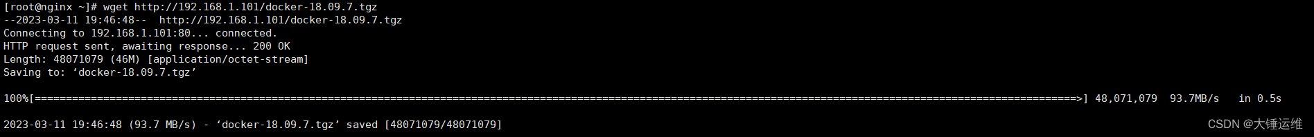 2、模擬其他服務(wù)器來文件服務(wù)器wget下載文件(喔的天,93M/S)